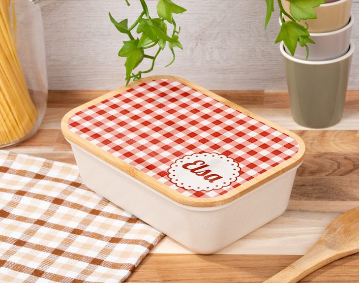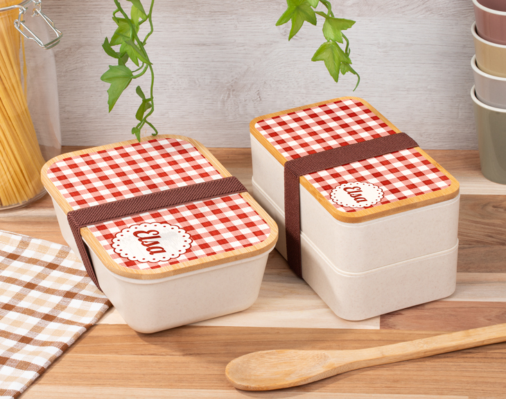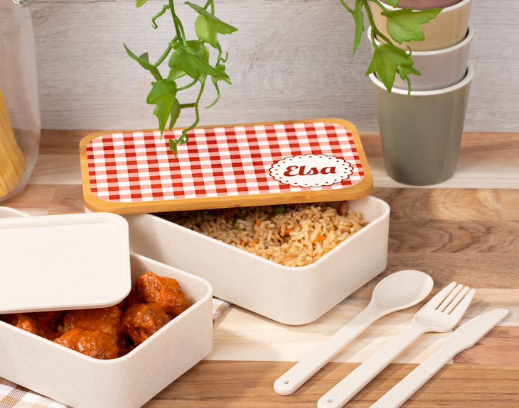 Si eres de esas personas que disfrutan comiendo, sea donde sea... ¡Este tupper bento personalizado es perfecto para ti! No importa si tienes que comer en el trabajo, en la universidad, en alguna excursión o en un picnic en el campo porque esta preciosa lunchera será tu mejor aliado. Este utensilio es perfecto para hacer que todas tus comidas fuera de casa sean mucho más divertidas y te guste un poquito más prepararte el menú semanal. Date un caprichito o sorprende a esa persona que tiene que comer fuera de casa con esta original tartera y su adorable diseño. Hecha de plástico y de bambú, esta fiambrera de color beige y tapa de madera, es ideal para llevar tu comida donde quieras y disfrutarla al máximo. Además, también incluye una cinta elástica para evitar que la tapa se abra y tu comida esté siempre a salvo, incluso si quieres llevar este utensilio en el bolso, la mochila o una neverita portátil. ¡Lo tiene todo! Lo mejor es que podrás elegir la opción que más te guste: el táper individual de 1 litro de capacidad o la lonchera doble con dos recipientes de 700 mililitros, cubiertos y un separador de comida. Elige la opción que más te guste y se adapte a tus necesidades y personalízala como tú quieras. Antes de terminar, tienes que personalizar esta caja para almuerzo, no te preocupes que es muy fácil. Primero elige una de las dos opciones, añádela al carrito y entra en el área de personalización. Una vez ahí, nosotros te dejamos este diseño tan de picnic y tú solo tienes que escribir el nombre que quieras, colocarlo y listo. ¡Tendrás el mejor tupper del mundo para el día a día! Apto para microondas y lavavajillas. Material: PP (polipropileno). Libre de BPA. Información del tupper individual: - Medidas: 20 x 14 x 7 cm. - Capacidad: 1 litro. - No incluye cubiertos. Información del tupper doble: - Medidas: 18 x 10,6 x 9 cm (dos tuppers) / 18 x 10,6 x 5 cm (un tupper) - Capacidad: 700 mililitros cada recipiente. - Incluye cubiertos (cuchara, tenedor y cuchillo) Medidas de los cubiertos: 15 cm.