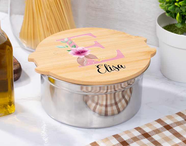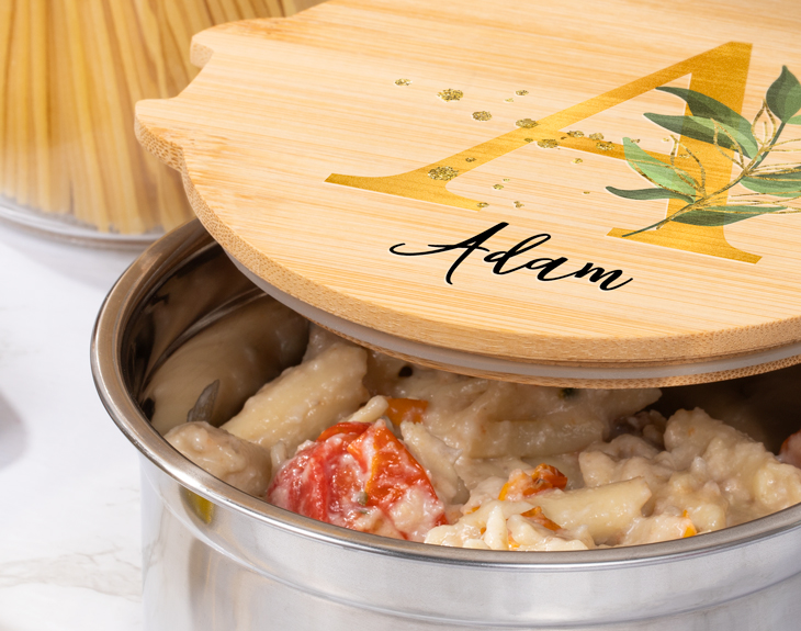 Ser estudiante o trabajar toda la semana en una oficina, implica comer fuera de casa y en tiempo récord para seguir haciendo las miles de cosas que tenemos que hacer al día. Por eso, como sabemos que este momento puede ser algo agobiante, queremos hacerlo mucho más entretenido con nuestro tupper personalizado 'Letras Botánicas'. Si quieres ser el más guay en el trabajo o en la universidad, hazte con esta preciosa y elegante lunchera para comer tus platos favoritos todos los días y disfrutarlos al máximo. ¡Es ideal! Date un caprichito o regala a alguien muy especial esta original tartera personalizada hecha de acero inoxidable y tapa de bambú. Gracias a su material, podrás mantener tu comida fría o caliente durante mucho más tiempo y disfrutarla estés donde estés. Además, incluye una cinta elástica para sujetar la tapa y evitar que se salga el contenido. Así podrás llevarlo en la mochila, en el bolso o donde quieras. ¡Lo tiene todo! Personalizar esta caja para almuerzo o táper es muy sencillo. Añade el producto al carrito y entra en el área de personalización. Ahí, podrás elegir la inicial con flores y plantas que más te guste y después escribir el nombre que aparecerá debajo. Nosotros nos encargamos del resto para que quede perfecto y listo para usar todos los días. ¡Tendrás el mejor tupper del mundo! Importante: este recipiente no es apto para microondas. Material: acero inoxidable (fiambrera), bambú (tapa). Medidas: 15 x 13 x 7,5 centímetros. Capacidad: 800 mililitros.