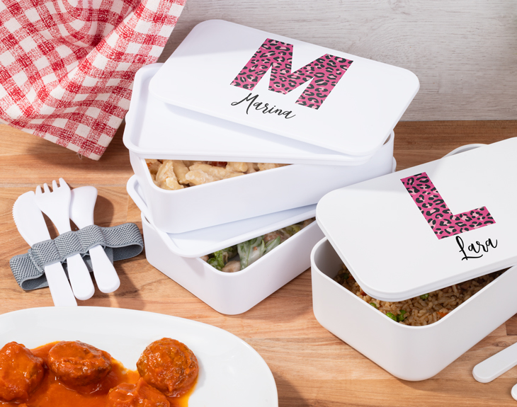 A cualquier persona que vaya a la universidad o al trabajo durante toda la semana, seguro que le toca comer fuera de casa. Y como sabemos que prepararse la comida puede ser algo tedioso, queremos hacer que esta tarea sea mucho más entretenida con tu propio tupper bento personalizado. Saca tu lado más salvaje con esta fiambrera y su diseño 'Animal Print' y conviértete en el más guay del comedor. Todos tus compis querrán tener un tupper tan genial como este. ¡Es ideal! Si quieres disfrutar al máximo de tu comida todos los días, hazlo con esta tartera personalizada en la que podrás poner tu inicial y tu nombre. Elige qué táper te gusta más: el individual que está hecho de plástico PLA, un material sostenible con el que ayudarás al planeta reutilizándolo todos los días; o el doble que incluye dos recipientes y está hecho de PP. ¡Ambos están libres de BPA, con cubiertos incluidos y una cinta elástica para asegurar el contenido! Si ya estás pensando cómo puedes personalizar esta caja para el almuerzo, no te preocupes porque es muy fácil. Solo tendrás que añadir el producto al carrito y entrar en el área de personalización, donde encontrarás el diseñador para elegir la inicial que quieras del estampado que más te guste y escribir tu nombre debajo. Nosotros nos encargamos de que quede perfecto y listo para usar. ¡Será el mejor regalo del mundo! Información del tupper individual: - Medidas: 19 x 11,5 x 6,5 cm. - Capacidad: 1 litro. - Incluye cubiertos (cuchara, tenedor y cuchillo). Material del tupper individual: PLA (ácido poliláctico). Libre de BPA. Materiales sostenibles. Información del tupper doble: - Medidas: 18,5 x 10,5 x 9 cm (dos tuppers) / 18,5 x 10,5 x 4,5 cm (un tupper) - Capacidad: 1,4 litros (entre ambos). - Incluye cubiertos (cuchara, tenedor y cuchillo) - Anti bacterial. Material del tupper doble: PP (polipropileno). Libre de BPA. Medidas de los cubiertos: 13,5 cm.