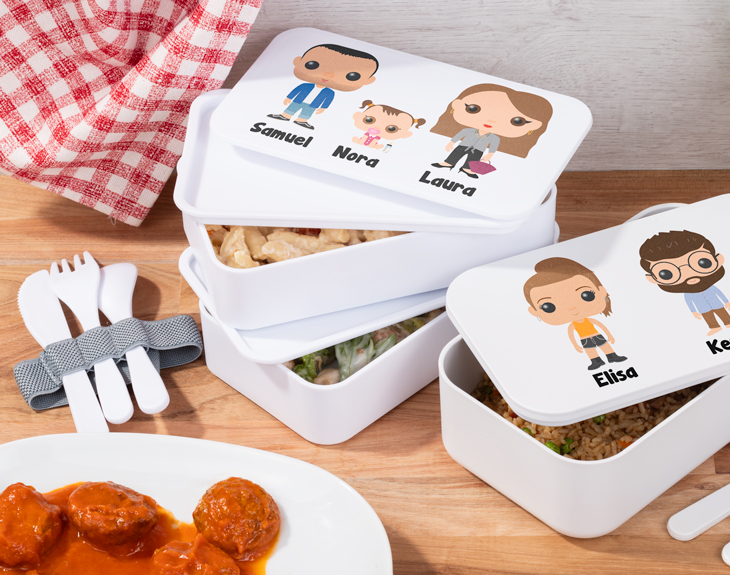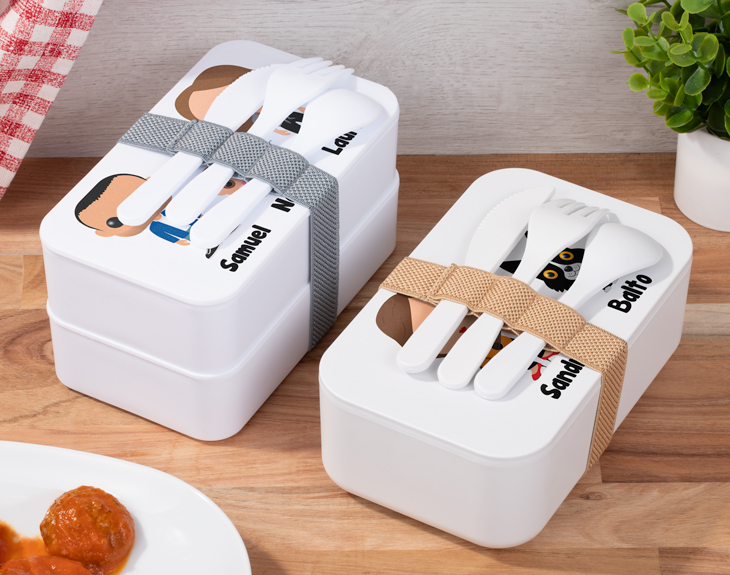 Sabemos lo tedioso que puede ser el tener que llevarte comida a la oficina o a la universidad. ¿Por qué no hacerlo de la forma más colorida y peculiar posible? Con este tupper bento personalizado seréis los más populares de todo el comedor. ¡Todos querrán tener una fiambrera Tinok tan animada como esta con cubiertos incorporados! No se nos ocurre una forma más chula de disfrutar de tus comidas favoritas que con una tartera personalizada con diseño Tinok como esta. Una caja para el almuerzo como esta puede ser tanto individual como doble. El individual está hecho de plástico PLA, un material sostenible con el que ayudarás al planeta reutilizándolo todos los días; mientras tanto, el doble está hecho de PP. ¡Ambos están libres de BPA! El individual cuenta con una capacidad de 1 litro, mientras que el doble cuenta con una capacidad de 1,4 litros entre las dos sandwicheras. Además, el doble cuenta con una pequeña barrera con la que separar compartimentos. ¡Personalizar este táper es de lo más fácil! Solo tendrás que añadir el producto al carrito y entrar en el área de personalización, donde encontrarás el diseñador de personajes. ¡Podrás crear tu propio Tinok o el de esa persona a la que tanto quieres! Este aparecerá en la tapa del tupper y decorará vuestros días más rutinarios. ¡Escoge el tamaño que quieras entre los dos disponibles! Información del tupper individual: - Medidas: 19 x 11,5 x 6,5 cm. - Capacidad: 1 litro. - Incluye cubiertos (cuchara, tenedor y cuchillo). Material del tupper individual: PLA (ácido poliláctico). Libre de BPA. Materiales sostenibles. Información del tupper doble: - Medidas: 18,5 x 10,5 x 9 cm (dos tuppers) / 18,5 x 10,5 x 4,5 cm (un tupper) - Capacidad: 1,4 litros (entre ambos). - Incluye cubiertos (cuchara, tenedor y cuchillo) - Anti bacterial. Material del tupper doble: PP (polipropileno). Libre de BPA. Medidas de los cubiertos: 13,5 cm.