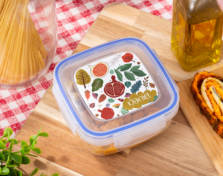 Quien diga que no le gusta el otoño es porque no sabe que tiene la mejor cosecha de frutas y verduras del año. Calabaza, plátano, naranja, uvas, calabacín, berenjena... ¡Se pueden hacer cosas riquísimas con todo ello! Si eres todo un cocinitas y te encanta llevar tus platos estrella a cualquier parte, este tupper personalizado será tu mejor aliado. Añade tu nombre en el diseño de su tapa y serás la envidia de todo el mundo. Sin duda, este original utensilio es ideal para guardar tus snacks o frutas favoritas pero también para la comida de cada día. Tiene el tamaño perfecto para guardarlo donde quieras y gracias a sus cuatro solapas, este táper de plástico se cierra herméticamente para que su contenido no se derrame. ¡Es lo más! Pero espera que todavía queda la mejor parte y es personalizar este tupper para que sea único. Lo único que tienes que hacer una vez que entres en el área de personalización, es completar este bonito diseño con el nombre que quieras. Así de fácil. Del resto nos encargamos nosotros. ¡Será el regalo perfecto para cualquier ocasión! Importante: el color y la forma del tupper pueden variar según stock. Material: plástico transparente. Medidas: 12,5 x 12,5 x 6,5 cm. Capacidad: 500 ml.