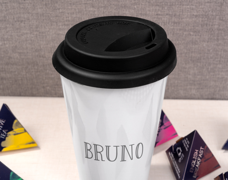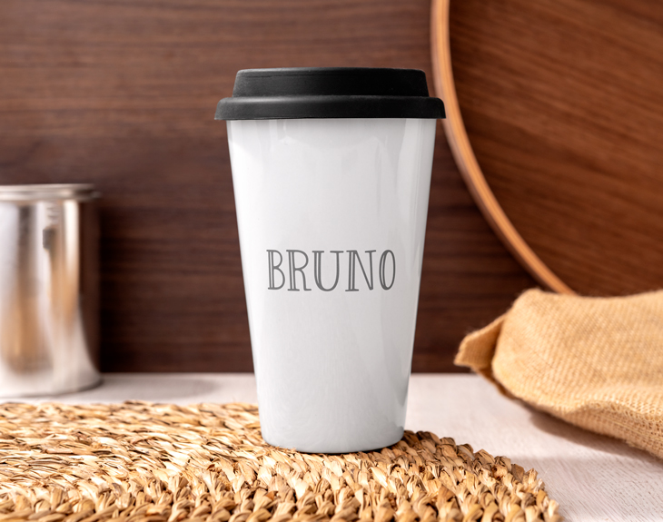 Si quieres llevar tu bebida favorita vayas donde vayas, podrás hacerlo con este vaso de cerámica. Si estás buscando un regalo original para esa persona que no puede vivir sin su café diario esta opción es fantástica. Un detalle especial y práctico. Incluye una tapa y una funda aislante de silicona para que puedas beber en cualquier lugar y sin derramar nada. Y es que, si es de esas personas que desayuna siempre de camino al trabajo, le vendrá genial un vaso como este. Lo mejor de todo es que podrás personalizarlo con su nombre, esa palabra tan representativa o esa fecha tan importante. Medidas: - Altura: 13,5 cm - Ancho: 9 cm diámetro en la parte superior y 5,5 cm. de diámetro en la base. - Capacidad: 400 ml.