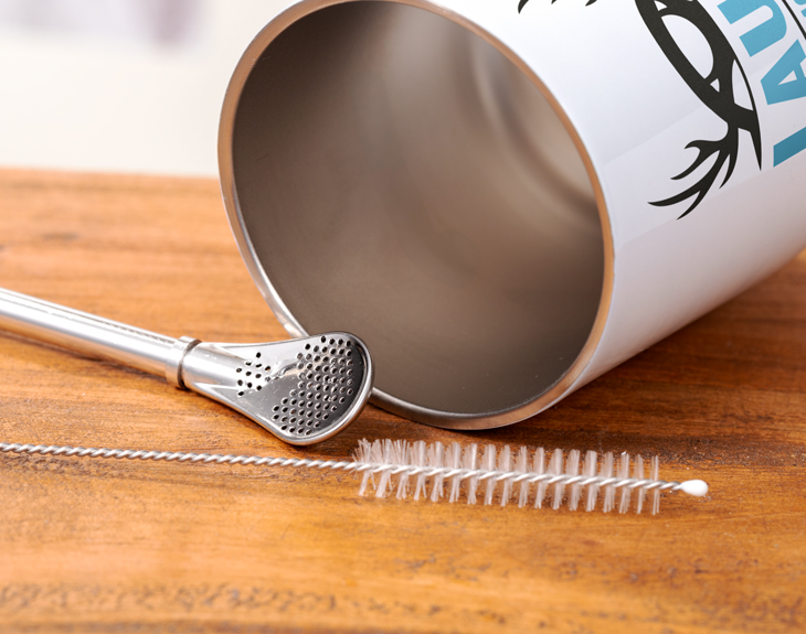 • Vaso mate personalizado. • Bombilla (opcional). • Tarjeta recordatoria.