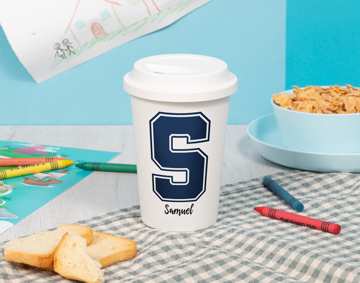 Es importante que los niños se mantengan bien hidratados y sepan que tienen que ser respetuosos con el medio ambiente. Crecer significa aprender cada día una cosa nueva, y empezar a beber solos es una de ellas. Por eso, si como padre quieres hacer de esta tarea algo muy sencillo, sorprende a tu peque con este vaso de cerámica personalizado. Es el utensilio perfecto para que los pequeños de la casa aprendan a beber solos y se sientan muy mayores. ¡Les encantará! Este original vasito es ideal para que los peques puedan disfrutar de su bebida favorita siempre que quieran. Pero lo mejor de este vaso es que incluye una funda aislante de silicona a juego con la tapa para que beban cómodamente y sin derramar nada. ¡Es el mejor regalo del mundo! Personalizar este vaso es muy sencillo, así que podrás hacerlo junto a tus hijos. Lo único que tenéis que hacer es añadir el producto al carrito y entrar en el área de personalización. Elige la inicial que más te guste de nuestra familia 'Alfabeto College' y nosotros nos encargamos del resto. ¡El peque podrá disfrutar de su vasito vaya donde vaya! Medidas: - Altura: 13,5 cm. - Ancho: 9 cm diámetro en la parte superior y 5,5 cm de diámetro en la base. - Capacidad: 400 ml.