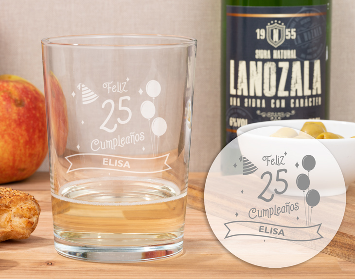 Se acerca ese día, el cumpleaños de ese amigo o amiga tan especial y no tienes ni idea de que regalar. Nosotros te damos esta gran idea, un vaso de sidra con un diseño original y personalizado para desearle lo mejor en su día. En este vaso de sidra personalizado ponemos los años que cumple y su nombre para que se sienta todavía mucho más especial. El cristal de este vaso es muy fino para que cuando escancie la sidra, rompa y se disfrute de la sidra como de verdad se merece. ¿No crees que es un regalo genial? ¡Seguro que le va a encantar!