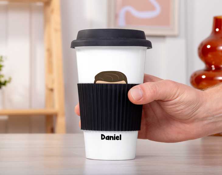 Tenemos el regalo perfecto para los amantes del café y esas personas que quieren cuidar y respetar el medio ambiente: ¡nuestro vaso de cerámica personalizado! Este práctico vasito es perfecto para llevar tu café allá donde vayas y beberlo cómodamente siempre que quieras. Es la mejor opción para usarlo todos los días. ¡Es ideal! Si quieres sorprender a esa persona que no puede vivir sin su café, hazlo con este original vasito. Tiene el tamaño perfecto para transportarlo fácilmente y beber siempre que lo necesites. Podrás beber fácilmente gracias a su tapa de silicona con una pequeña ranura y una funda aislante a juego. Pero lo mejor de este vaso es su diseño. Podrás añadir tu propio muñeco Tinok con todos los detalles que quieras. ¡Será el mejor regalo del mundo! Para personalizar este vaso lo único que tienes que hacer es añadir el producto al carrito y entrar en el área de personalización. Ahí podrás comenzar a crear desde cero tu muñeco Tinok y nosotros nos encargamos de ponerlo en este práctico vaso. Estamos seguros de que lo usarás todos los días. Medidas: - Altura: 13,5 cm. - Ancho: 9 cm diámetro en la parte superior y 5,5 cm de diámetro en la base. - Capacidad: 400 ml.