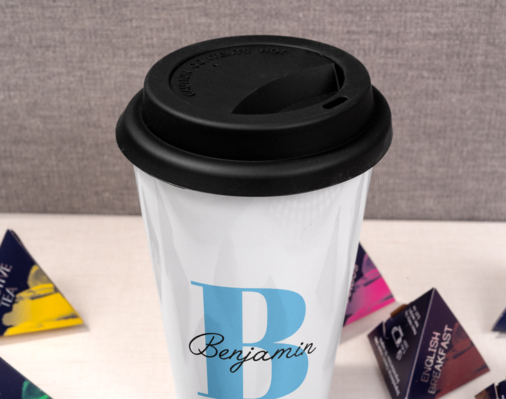 ¿Qué persona no ha tenido que salir corriendo de casa porque no llega al trabajo? A todos se nos han pegado las sábanas en algún momento de nuestra vida, por lo que este vaso decerámica personalizado es el producto perfecto para esas personas que no pueden empezar el día sin un café independientemente de la situación en la que estén. ¡Incluso de camino al trabajo! Un vaso con diseño de inicial que podrás llevar a cualquier parte, ya sea para tomarlo en el coche de camino a la oficina o para disfrutar de él en el transporte público. Esta taza cuenta con una tapa de silicona con ranura y una funda aislante, que funcionará perfectamente para que no se derrame ni una sola gota de su café o té y para que no te quemes. Además, este regalo original podrá ir personalizado con la inicial en color pastel que quieras. Solo tendrás que escoger el color de letra que más te guste en el interior del diseñador, una vez añadas el producto al carrito. Este aparecerá en la cara del vaso. Una vez en la plantilla solo tendrás que escribir la inicial que quieras y el nombre sobre la letra, clicando sobre los cuadros de texto. Medidas: - Altura: 13,5 cm. - Ancho: 9 cm diámetro en la parte superior y 5,5 cm de diámetro en la base. - Capacidad: 400 ml.
