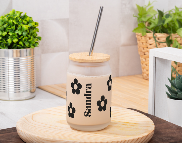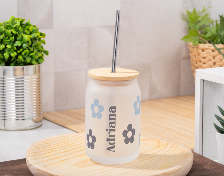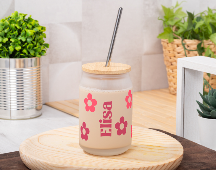 Disfrutar de un buen café es algo muy importante para hacer que el día vaya como la seda. ¡Por eso contamos con el mejor vaso para hacer que la jornada sea mucho más divertida! Este vaso con tapa y pajita personalizado es el mejor para saborear tu bebida favorita siempre que quieras. Con un diseño hecho al estilo de los maravillosos años 70, este vaso de cristal mate personalizado hará que cualquier momento de relax sea mucho más especial. Su material hace que sea todavía más particular, y cuenta con una capacidad de 400 mililitros. ¡La pajita y la tapa harán que lo puedas llevar a cualquier lugar! Este regalo original está hecho para todas aquellas personas que quieren disfrutar de un momento refrescante de la forma más elegante. ¡Personaliza este vaso con el diseño que quieras! Clica sobre el cuadro de texto que encontrarás en el diseño y escribe el texto que prefieras junto con el estilo que más te guste. ¡Un detalle floral que dejará con la boca abierta! Características: - Medidas: 12,5 cm x 7,7 cm - Capacidad: 400 ml - Material: cristal mate. - Pajita: acero inoxidable.