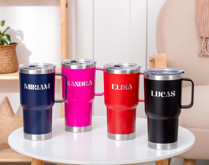 ¿Conoces a alguien que no sale de casa sin su botella? ¡Tenemos el regalo perfecto! Se trata de un termo de viaje personalizado para que pueda mantener siempre sus bebidas favoritas a la temperatura indicada, ¡aguanta tanto el frío como el calor! Cuenta con un increíble diseño inspirado en los termos Stanley, por lo que podrá encajarlo en el posavasos del coche o llevarlo con su práctico agarre. No tenemos ninguna duda, ¡se convertirá en su mejor compañero de aventuras! Fabricado en acero inoxidable reciclado de doble pared se trata de un vaso super resistente y duradero, perfecto para utilizar a diario. Cuenta con un dosificador en la tapa para evitar derrames y una capacidad de 600 ml, ideal para tener siempre disponibles sus cafés, tés o su agua bien fresca. ¡Seguro que le da muchísimo uso! Para viajar, llevar al trabajo, a la universidad o a la biblioteca, nos parece el termo indicado para cualquier tipo de ocasión. Por eso, si estás buscando un regalo original para esa persona que adora tener botellas y vasos muy especiales, esta opción le encantará. Capacidad: 600 ml. Medida: 8,80 x 17,50 cm. Material: Acero Inoxidable, doble pared. Libre de BPA. Colores disponibles: negro y gris.
