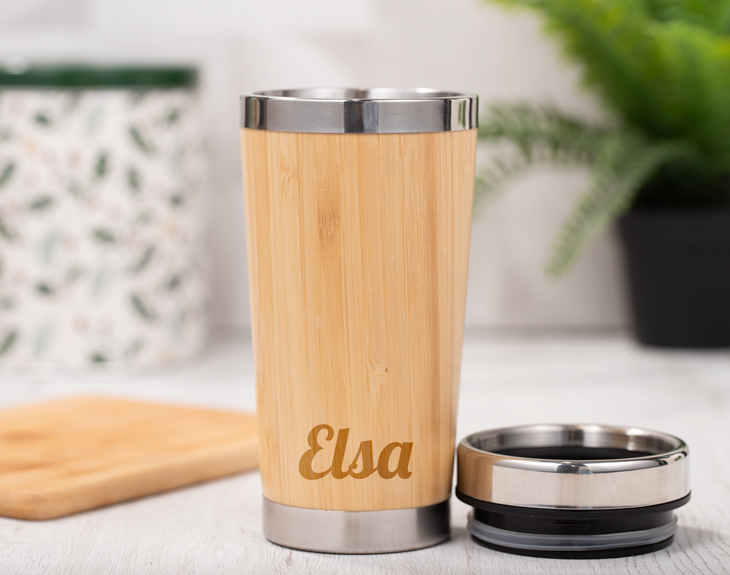 No se nos ocurre un regalo mejor para esa persona que no puede vivir sin su termo encima. Si adora hacerse tés o cafés y llevárselos a todas partes, este vaso termo personalizado tiene su nombre. Y es que, ahora podrá disfrutar aún más de sus bebidas favoritas. Su interior de acero inoxidable mantendrá el calor del líquido perfectamente y su exterior de madera de bambú le da una apariencia de lo más elegante y minimalista, perfecta para los amantes de la naturalidad. Además, se trata de un producto sostenible biodregradable que no perjudica al medio ambiente, una manera perfecta de dejar de lado el plástico y aportar nuestro granito de arena al planeta. Simplemente tienes que decirnos su nombre o el texto que quieras grabar para hacer que sea la botella más especial del mundo y no saldrá de casa ni un día sin ella. ¡Seguro que le gusta muchísimo! A la hora de abrir este vaso termo solo tendrás que tirar de la tapa hacia arriba. ¡Así podrás rellenar este termo con tu café todos los días! Para beberlo solo tendrás que seguir las indicaciones de la boquilla: desliza la pestaña para poder tomar un trago de tu bebida favorita. Medida: 17.5 cm de alto Capacidad: 500 ml. Importante: el vaso tiene un pequeño agujero en la tapa, no es un termo estanco.