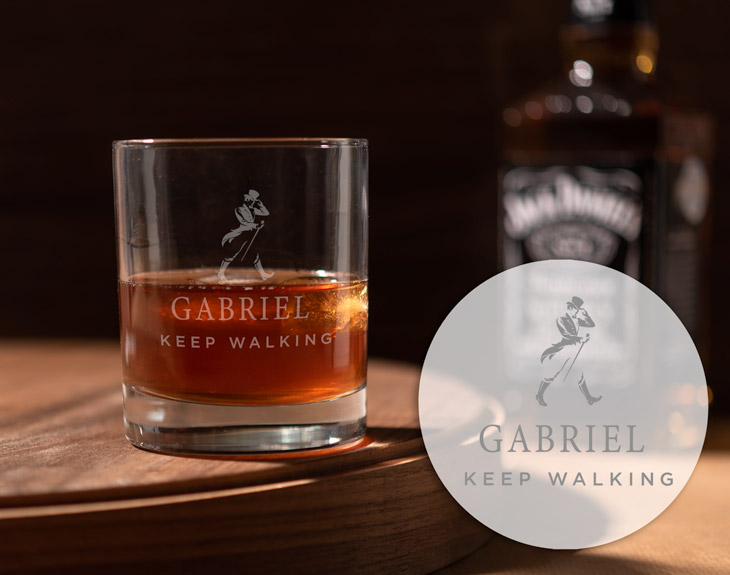 • Vaso de Whisky personalizado. • Tarjeta Recordatoria.