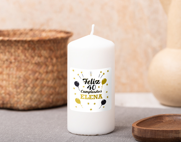 Sabemos que a veces lo de cumplir años puede ser complicado para ciertas personas. Sí, la juventud va pasando, pero eso no quita que la próxima etapa de vuestra vida no pueda ser maravillosa. ¿Tu pareja es una de esas personas que se pone triste cada vez que se acerca su cumple? Es el momento de sorprenderla al máximo con una cena romántica a la luz de esta vela personalizada. ¡Será un cumple único! Esta vela de colores con diseño de cumpleaños está hecha para todas esas personas a las que les encanta una buena cena a la luz de las velas. Esta vela tiene unas medidas de 15 centímetros de alto por 6,5 centímetros de diámetro, y podrás colocarla en cualquier rincón de la celebración. ¡Tanto si sois muchísimos como si sois solo los dos! Quedará bien en cualquier situación. El diseño de este regalo original para cumpleaños está pensado para esas personas finas y elegantes a las que les encanta pasar su cumpleaños rodeado de una atmósfera tranquila. A la hora de personalizar este producto solo tendrás que entrar en el diseñador, donde encontrarás la plantilla del producto. ¡Escribe la edad que cumple esa persona especial junto con su nombre! Medidas: 14x5,5 cm.