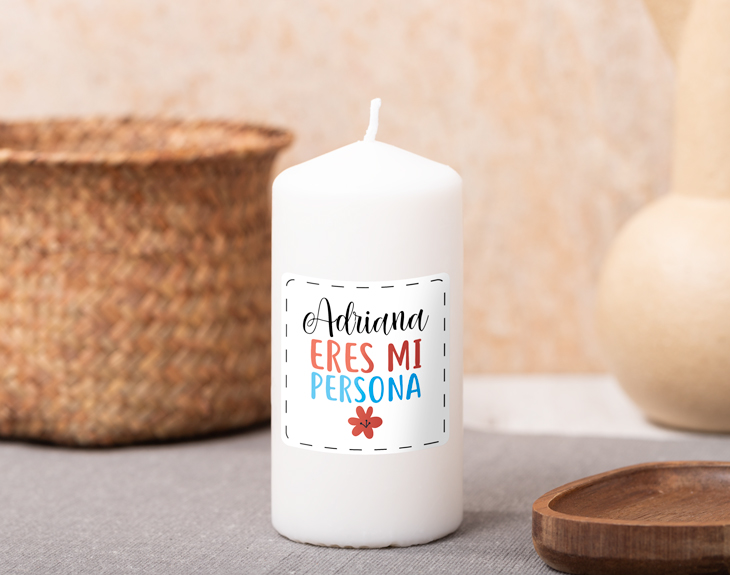 ¿Alguna vez has sentido una conexión tremenda con alguien? Ese momento en el que por fin encuentras a la persona que te comprende a la perfección es completamente mágico. No tiene por qué ser tu pareja: esa persona solo tiene que conocerte a la perfección, entenderte en las situaciones más complicadas y confiarle cualquier secreto. ¿Por qué no regalarle esta vela personalizada? ¡Es el mejor detalle para ese alguien especial! Sorprende a tu mejor amigo o pareja con esta vela de colores con diseño para una persona especial. Si conoces a alguien que es tu persona perfecta... ¡Este es tu regalo perfecto! Esta vela cuenta con una altura de 15 centímetros y una base de 6,5 centímetros de diámetro. ¡Tiene la estatura perfecta para situarle en cualquier lugar de la casa! Si tienes la suerte de tener a ESA persona a tu lado, no habrá mejor regalo original que este. ¡Esta hecho con un diseño hecho específicamente para esa persona que es tu otra mitad! Una vez añadas el producto al carrito, podrás escribir el nombre de el/la afortunado/a en el portal de personalización. ¡Diséñalo con el nombre que quieras! Medidas: 14x5,5 cm.