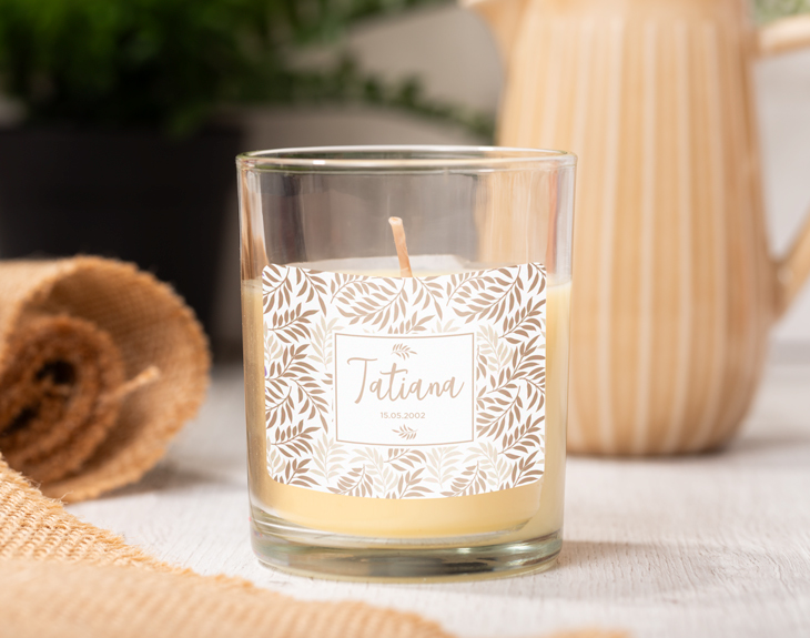 Que te regalen tu aroma favorito es todo un detalle. Y es que si alguien te regala esta vela en vaso personalizada, eso significa que te conoce muy bien. Es el regalo perfecto para esas personas amantes de las velas y de los buenos olores. Si te encanta que tu casa huela siempre bien, esta vela aromática es el regalo perfecto para ti. ¡Conquistarán tu olfato! Coloca este original regalo en cualquier rinconcito de tu casa y dale un toque de lo más especial. Porque velas hay muchas pero ninguna tan especial como está vela con tu nombre. Pero es que además de poder elegir qué diseño de 'Hojas de té' te gusta más, también podrás elegir tu aroma favorito entre todos los que tenemos disponibles. ¡Hay para todos los gustos! Personalizar esta vela con diseño es muy fácil. El primer paso es añadir el producto al carrito y después entrar en el área de personalización. Una vez ahí, solo tienes que completar este precioso diseño y disfrutar de este precioso regalo. ¡Dejarás sin palabras a quien lo reciba! Medidas: - Altura: 8 cm.