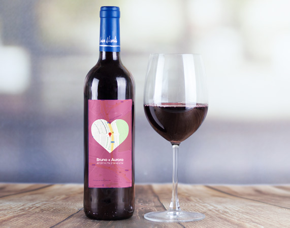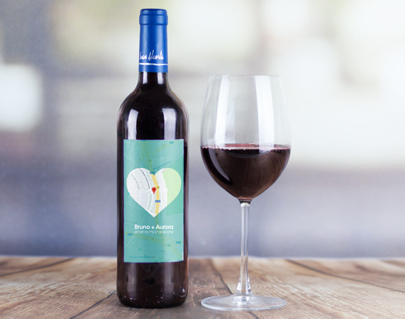 Si hay un lugar por el que brindar, ese es sin duda por ese sitio especial para vuestra relación. Personaliza una botella de vino con vuestros nombres, el mapa del lugar y sus coordenadas y haz el regalo más bonito del mundo. ¿No te parece increíble nuestro vino "Mapa del amor"? Utilizamos como base un exquisito vino de la Tierra de Castilla y León, cuya Certificación de Origen asegura que es un producto de una calidad excepcional. Envejecido en barrica de roble, estamos ante un caldo sorprendente y lleno de matices, cuya botella premium y su elaborado sabor hacen de él el mejor regalo posible.