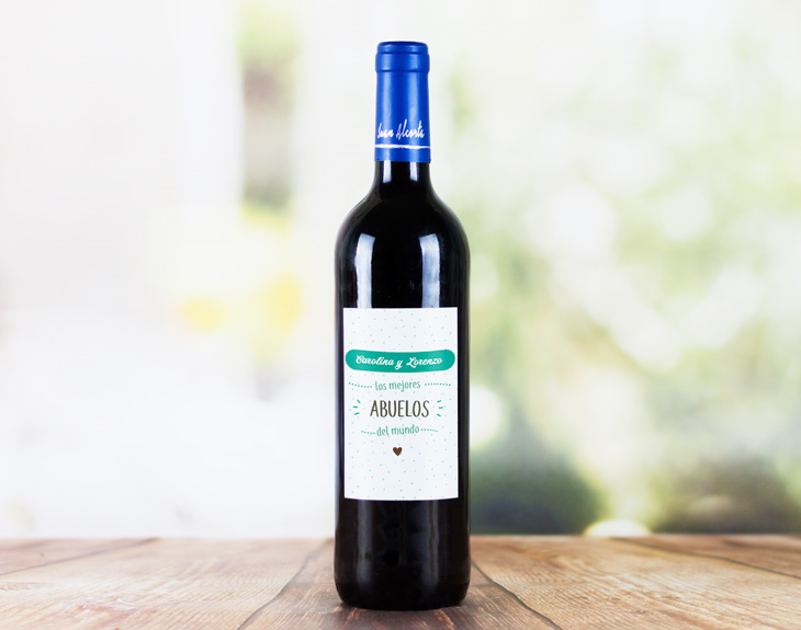 Si el vino nunca podía faltar en la mesa en las comidas en casa de tus abuelos, que mejor forma de agradecerles todo lo que han hecho por ti que con este vino personalizado. Una botella de vino personalizada es perfecta para agradecerles a tus abuelos todos sus mimos y su cariño incondicional. Seguro que no hay nada en el mundo que les haga más ilusión que pasar un buen rato con sus nietos acompañándolo con una copa de vino. Para personalizarlo simplemente nos tienes que decir el nombre de tus abuelos y nosotros nos encargaremos del resto. Utilizamos como base un exquisito vino de la Tierra de Castilla y León, cuya Certificación de Origen asegura que es un producto de una calidad excepcional. Envejecido en barrica de roble, estamos ante un caldo sorprendente y lleno de matices, cuya botella premium y su elaborado sabor hacen de él el mejor regalo posible.