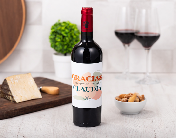 A todos nos apetece oír la palabra "gracias" de vez en cuando. Es algo que necesitamos escuchar en algún momento de nuestro día. Que los jefes nos agradezcan nuestro trabajo o que nuestros amigos nos den las gracias por toda la ayuda que les prestamos es algo inexcusable. ¡Es algo precioso! Y es que todos recibimos o damos un gracias a lo largo de nuestra jornada. Ya sea en el transporte público, en casa a la hora de la cena o en nuestro puesto de trabajo... ¡los agradecimientos siempre están ahí! Si quieres sorprender a una personita especial con un enorme gracias, este vino personalizado es el regalo más indicado. ¿Quién no está deseando probar este riquísimo vino de la Tierra de Castilla y León? Con un diseño de agradecimiento que sorprendería a cualquiera, esta botella es el mejor regalo original. Para personalizar este producto solo tendrás que entrar en nuestro diseñador: ¡ahí podrás crear tu propia botella con el texto que quieras!