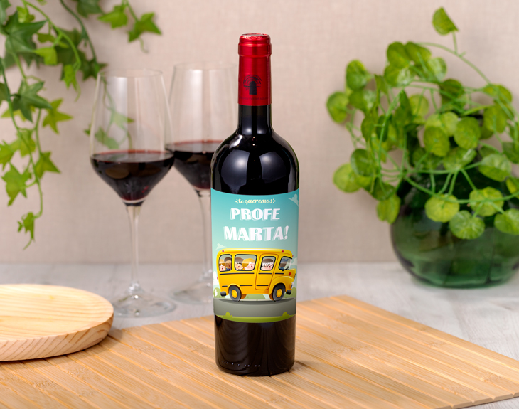 La botella de vino personalizada más especial para regalar a tu profesora o profesor favorito. ¿A quién no le gusta que le regalen una botella de vino con un mensaje tan bonito?. Un detalle de sus alumnos que nunca olvidará. Seguro que guarda la botella para acordarse siempre de vosotros. Utilizamos como base un exquisito vino de la Tierra de Castilla y León, cuya Certificación de Origen asegura que es un producto de una calidad excepcional. Envejecido en barrica de roble, estamos ante un caldo sorprendente y lleno de matices, cuya botella premium y su elaborado sabor hacen de él el mejor regalo posible.