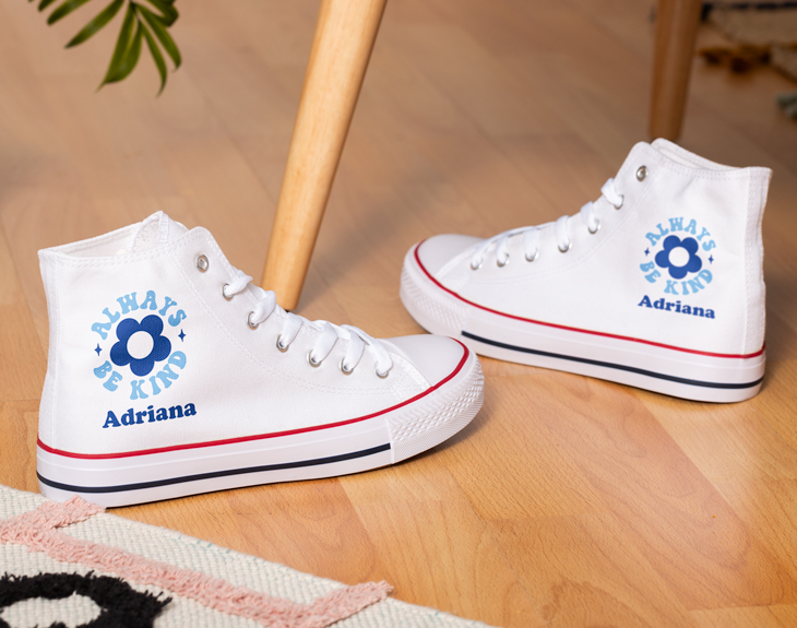 Si este verano no vas a parar de viajar y de conocer lugares súper chulos, no te olvides de meter en tu maleta estas zapatillas personalizadas. Son el accesorio perfecto para cualquier situación: visitar un montón de playas, hacer una excursión por esa ciudad que tanto querías visitar o pasar un día en el campo. Su diseño es lo más y podrás tenerlo en ambas zapatillas. ¡Serán geniales! Estas originales zapatillas se convertirán en tu calzado favorito para este verano y para todo el año, porque además de ser geniales, también son súper cómodas. Podrás elegir si las quieres en color blanco o negro y también el color del diseño, así que podrás hacer las combinaciones que quieras. Y como queremos que estas zapatillas sean para todo el mundo, tenemos diferentes tallas, tanto para niños como para adultos. ¡Serán las zapatillas del verano! Personalizar estas zapatillas altas es muy sencillo. Entra en el área de personalización, elige el color y la talla y comienza a diseñar. Escoge el color de este precioso diseño y complétalo con el nombre que quieras. Nosotros nos encargamos de que quede perfecto y listo para regalar. ¡Triunfarás seguro! Importante: se personaliza con el mismo diseño la cara externa de cada zapatilla. Importante: la guía de tallas indica el tamaño de la suela.
