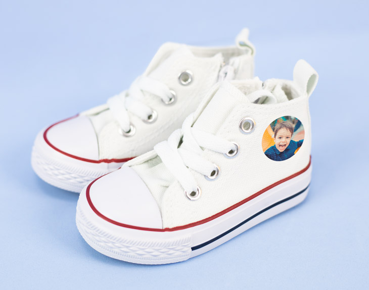 La ropa de nuestros peques es súper importante. Las zapatillas les tienen que gustar tanto a ellos como a nosotros y tienen que ser cómodas, funcionales y bonitas. Con estas zapatillas infantiles personalizadas cumplirás todas las funciones que necesitan. En ellas podrás poner la foto que quieras, tú tan sólo tienes que elegirla y nosotros haremos el resto. Nuestros botines vienen en color blanco y hay 10 tallas distintas para niños. Son súper cómodas y cuando las tengas os gustarán tanto que tu hijo no se las va a querer quitar. Hacerte con unas es muy fácil, simplemente tienes que añadirlas a la cesta y personalizar con la foto que quieres que vaya dentro del círculo. Tu hijo podrá presumir de ellas allá donde vaya: el cole, la guardería, una quedada de juegos... Y podrá llevar consigo esa foto tan importante y que tan buenos recuerdos te trae, y cuando crezca os las podréis quedar de recuerdo y usarlas como adorno. ¿A que es genial? Especificaciones - Se personaliza con el mismo diseño la cara externa de cada zapatilla. - Las zapatillas incluyen cremallera hasta la talla 32, a partir de ese número se abrochan con cordones.