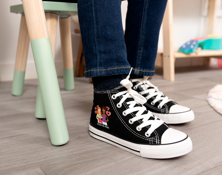 Cómo mola cuando encuentras a tu alma gemela, a esa persona que te completa y con la que puedes ser tú siempre. Si has encontrado a alguien con quien compartir la vida, se merece un pequeño detalle para terminar de conquistarle el corazón. Por eso, no hay mejor regalo que nuestras zapatillas altas personalizadas. Su diseño terminará de enamorar a tu pareja, porque os podréis convertir en auténticos dibujos animados. ¡Es un regalazo! Su cumpleaños, San Valentín o vuestro aniversario. No importa cuando sea, estas originales zapatillas son ideales para cualquier ocasión. Si quieres dejar a tu novio o novia sin palabras, estas zapatillas son la mejor opción del mundo. Altas y de color negro, son ideales para combinarlas con todas sus prendas, tanto en el día a día como en momentos más formales. Además, podrás elegir la talla para asegurarte de que le quedan como un guante. ¡No querrá quitárselas nunca! El último paso es personalizar estas zapatillas y para eso lo primero es añadir el producto al carrito y entrar al área de personalización. Una vez ahí, podrás elegir la talla que quieras y después crear tus propios dibujos animados con los detalles y fondo que tú quieras, para que se parezcan un montón a vosotros. Añade vuestro nombres o una pequeña frase y... ¡listo!