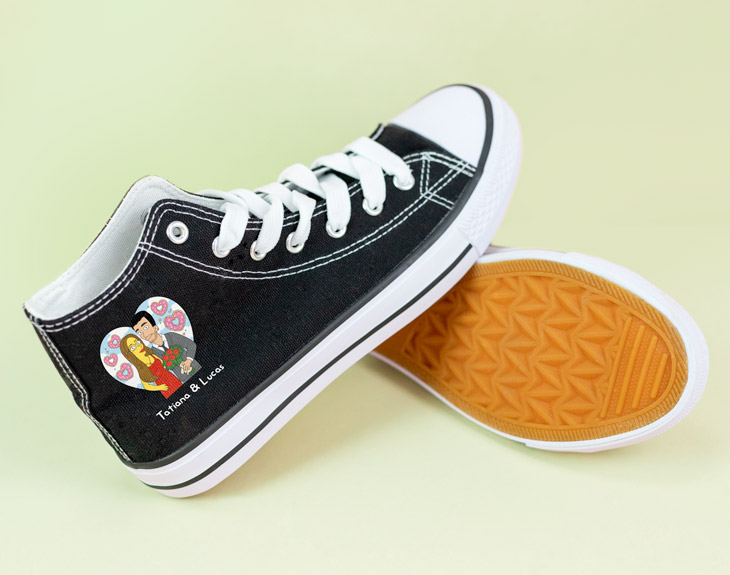 A la hora de elegir pareja nos tenemos que fijar en muchas cualidades que debe de tener como, por ejemplo: que sea una persona cariñosa, detallista, amable, con sentido del humor… Pero hay una característica en concreto que es imprescindible para que se convierta en el amor de tu vida y es que sea un verdadero fan de los Simpson. Así que, si tu pareja adora esta serie, no dudes y sorpréndela con estas zapatillas personalizadas. Es el regalo perfecto para vuestro aniversario, para San Valentín o para su cumpleaños. Lo más especial de todo, es que son personalizables, es decir que tú diseñas los personajes Simpson como tú quieras. ¡Seréis la pareja de enamorados más goals de todo Springfield! Crear a los personajes es muy sencillo. El primer paso es añadir las zapatillas al carrito, entrar al área de personalización y una vez ahí, ya puedes personalizarlos como más te guste. Hay un montón de opciones, seguro que encuentras Importante: se personaliza con la misma imagen la cara externa de cada zapatilla.
