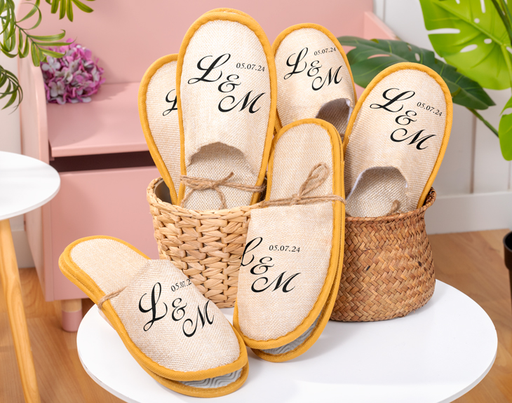 ¡El día de la boda tiene que ser inolvidable! Si la novia está muy ocupada organizando los preparativos, está claro que cuando llegue el día lo mejor que puede hacer es relajarse para que todo salga a la perfección. Y mejor manera de conseguirlo es preparándose junto a sus mejores amigas. Por eso, nuestras pantuflas personalizadas con diseño "Iniciales elegantes" son ideales para esa ocasión. ¡Iréis conjuntadas! Además, lo mejor que tienen estas zapatillas de estar por casa es que son personalizables. Podrás escribir las iniciales de los protagonistas de la boda junto a la fecha. ¡Quedará genial! Sin duda, estas pantuflas se convertirán en un recuerdo inolvidable para los invitados de la boda. Por último, podrás personalizar estas pantuflas. ¡Es muy sencillo! El primer paso a seguir consiste en añadir el producto al carrito y entrar al área de personalización. Una vez ahí, ya puedes escribir las iniciales de los novios. Pronto estará perfecto y listo para regalar. ¡Será un original regalo para bodas! Talla única 36-43. Medidas: 27cm x 10,3cm. Material: algodón/poliéster.